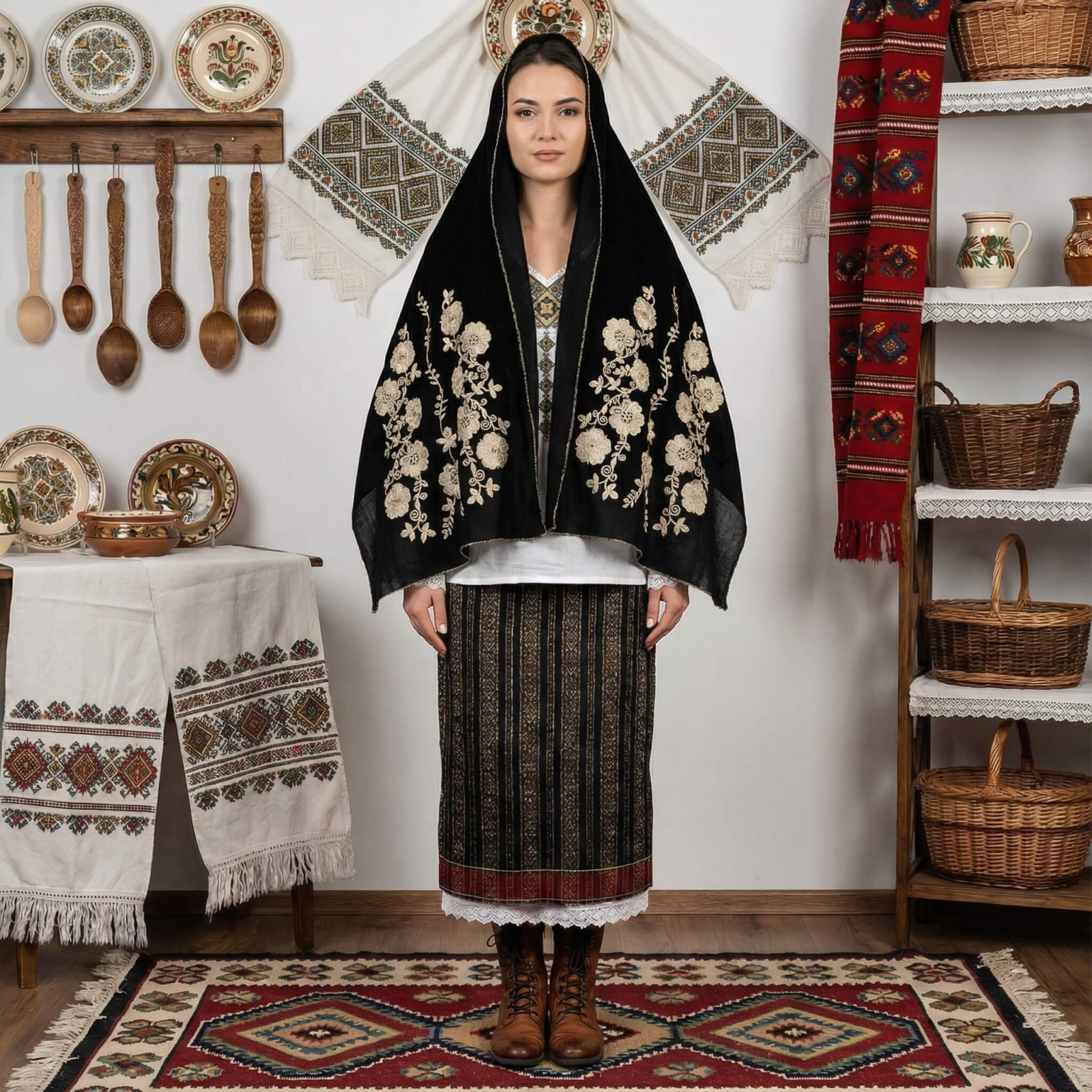 Marama alba cu broderie traditionala, confectionata cu multa grija ca tu sa fi unica in orice combinatie de haine pe care ai purta-o .
