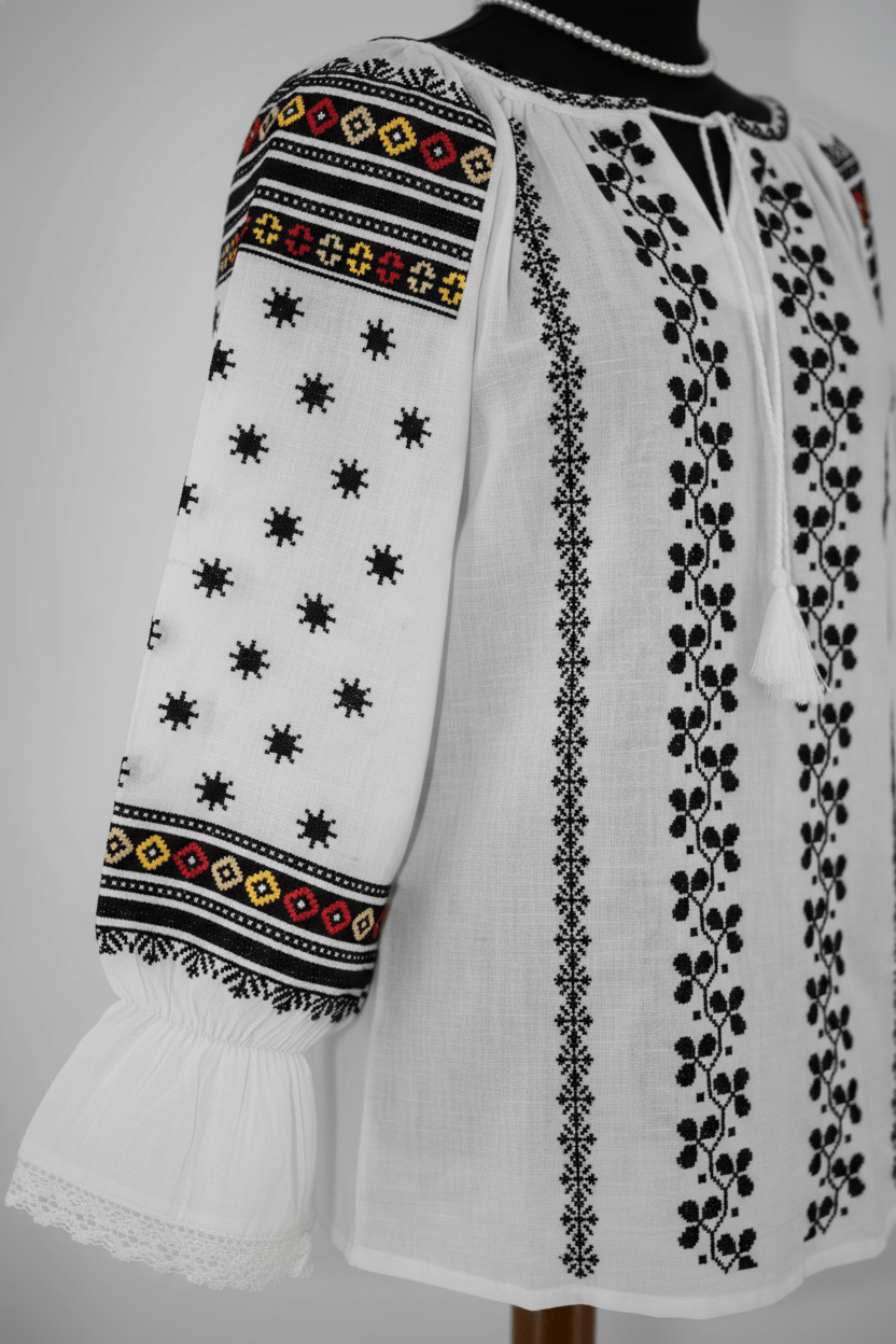 Изживейте истинската красота на България с Сандикa, популярна традиционна риза, която е много ценена заради геометричната си бродерия!