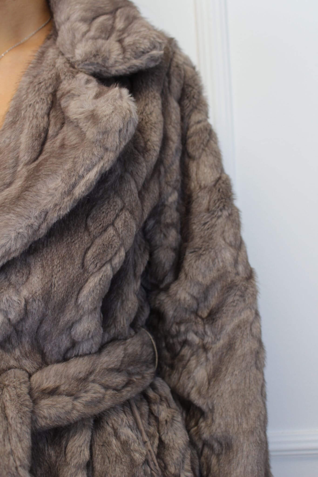 Дълго палто от органична кожа в различни цветове с връзки за стягане