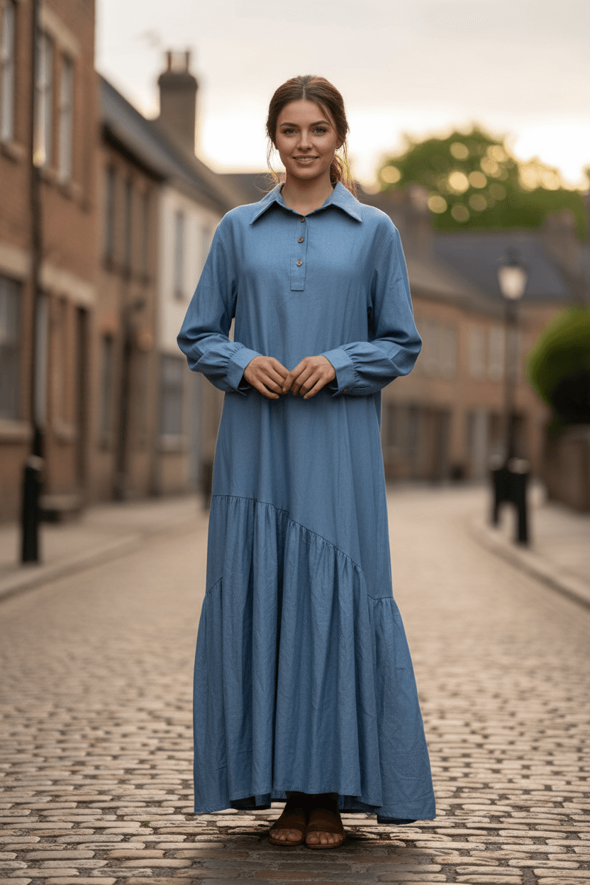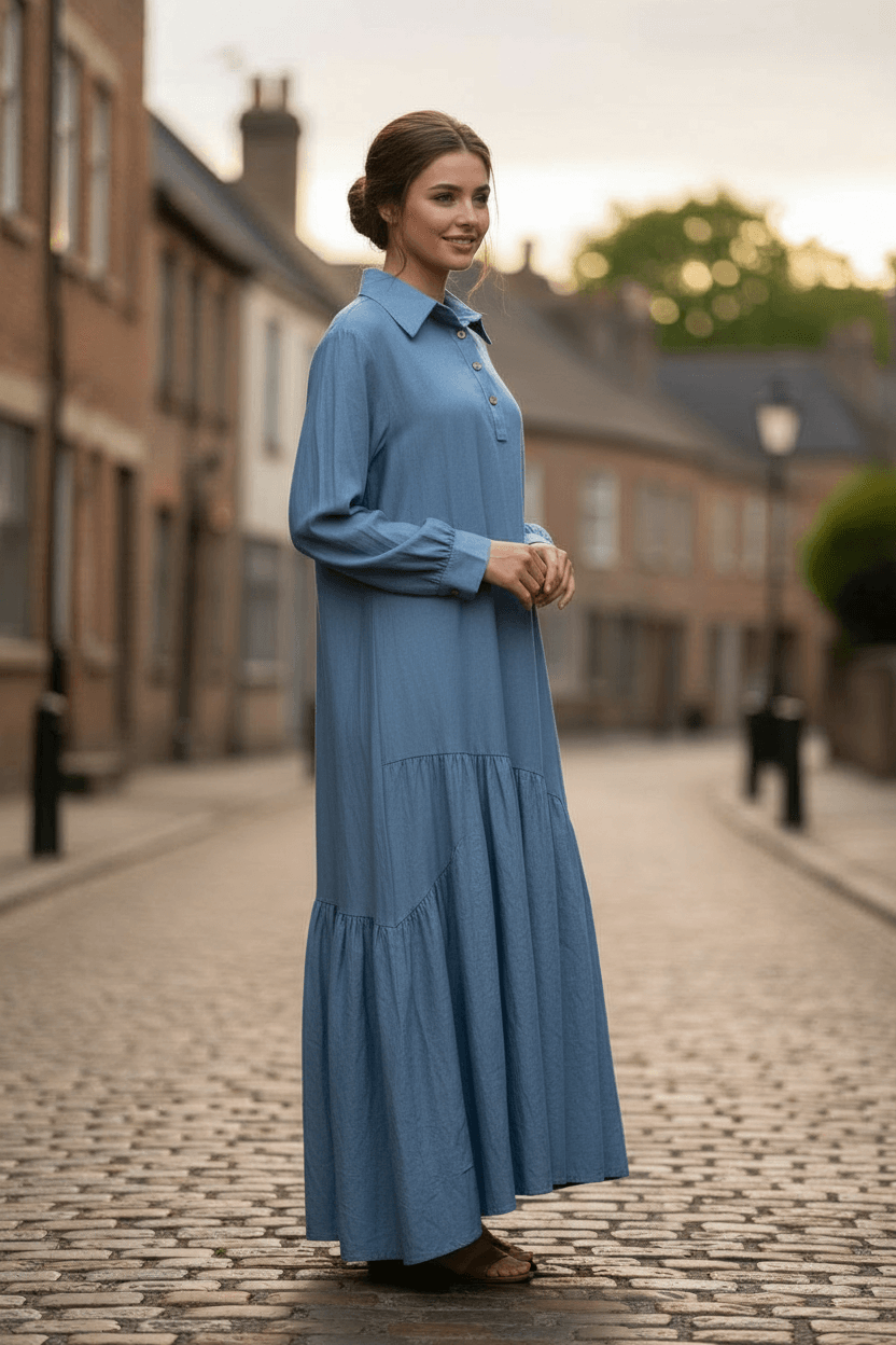 Моделът на снимката е 160 см, 57 кг, 89 см бюст и носи универсален размер