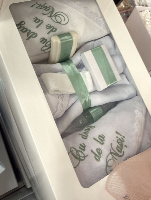 La cerere personalizam trusoul de botez: contra cost 50 de lei *Cost suplimentar personalizare 50 / 75 de lei : Nume copil , data eveniment sau data nasterii  / pe fasa si pe pled