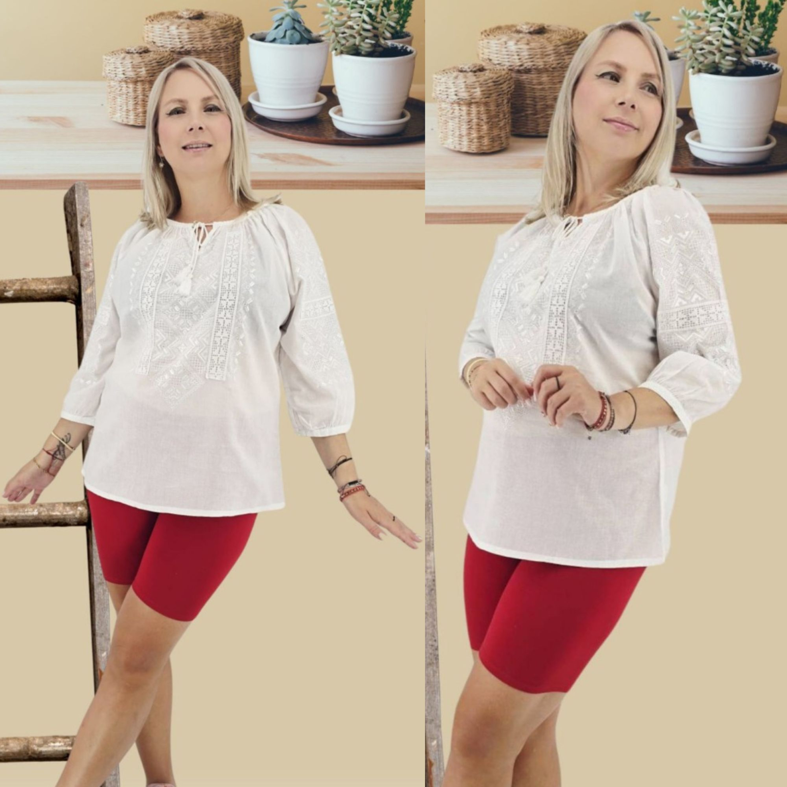 👉 Моделът на снимката е висок 160 см, тежи 63 кг, има обиколка на гърдите 92 см и е облечен в размер M.