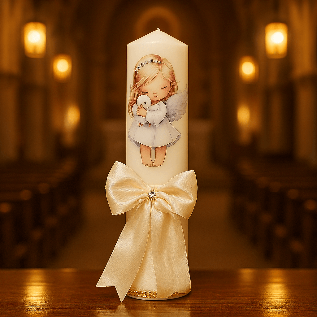 Descoperă eleganța și delicatețea întruchipată în Lumanarea Botez cu Model Fetita și Fundiță. Cu un design rafinat ce îmbină subtilitatea modelului fetiței și frumusețea fundiței, această lumanare adaugă un plus de farmec ceremoniei de botez. Fabricată cu grijă din materiale de calitate, această lumanare este alegerea perfectă pentru a marca cu emoție și stil acest moment special în viața micuței tale.