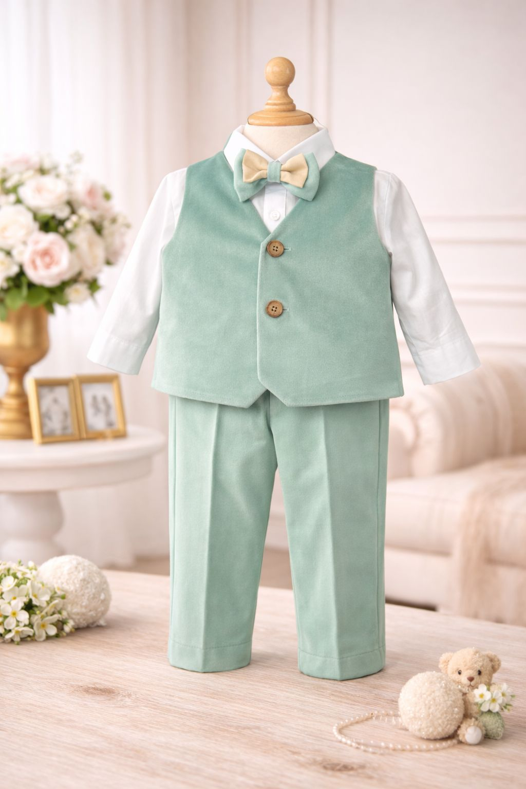 Кадифен костюм за кръщене за момче, Матиас - тюркоаз