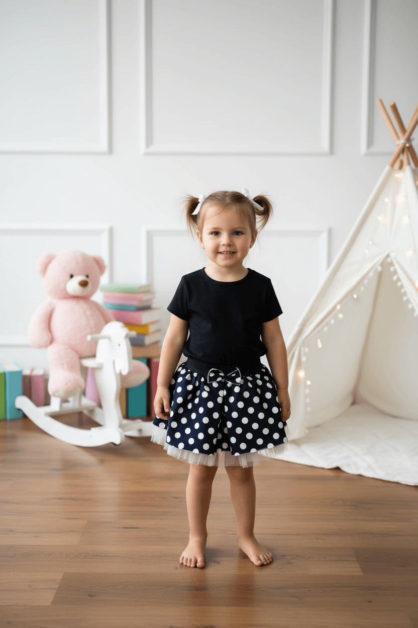 2-4 – pentru fetite 1-2 ani 12 cm in talie , se intide elasticul din talie pana la 54 cm, lungimea fustitei este de 40 cm