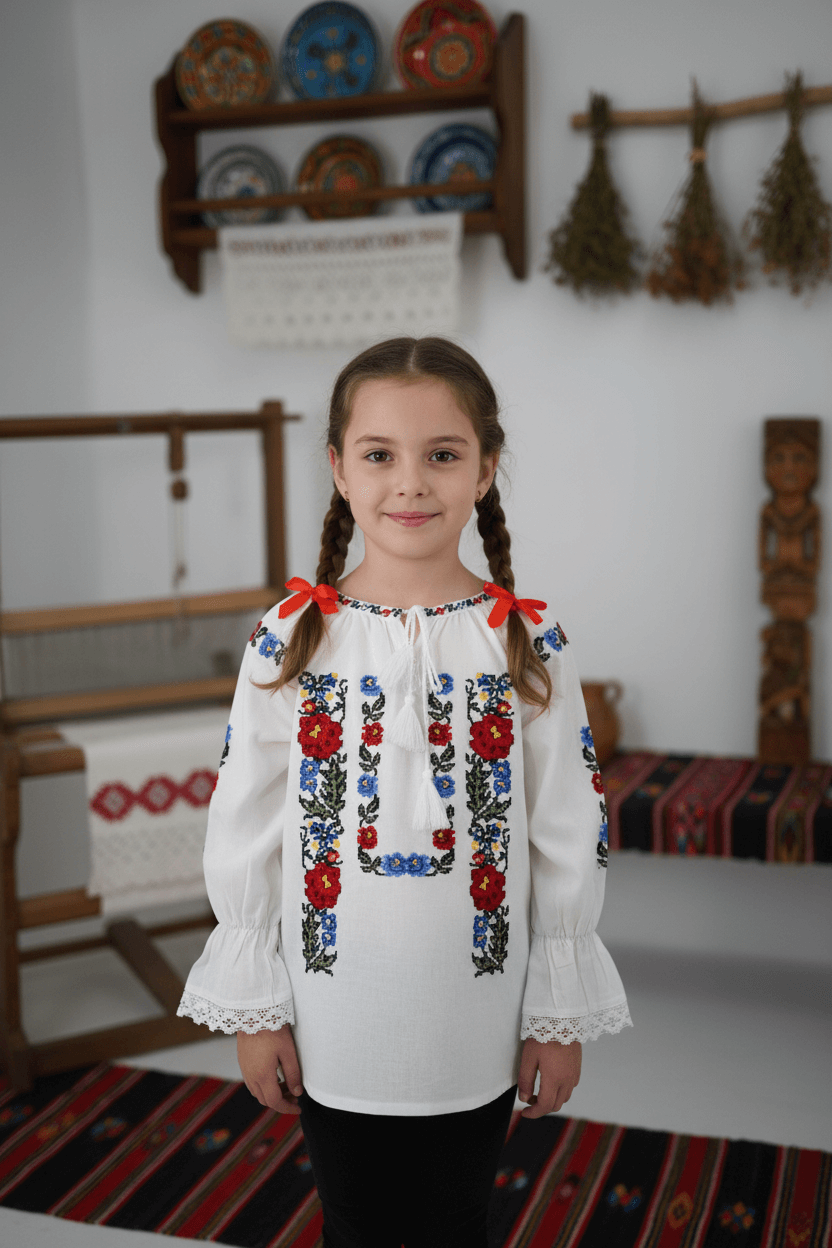 masura 8 – pentru copii 6-8 ani – 82cm circumferinta bust, 45cm lungime bluza.