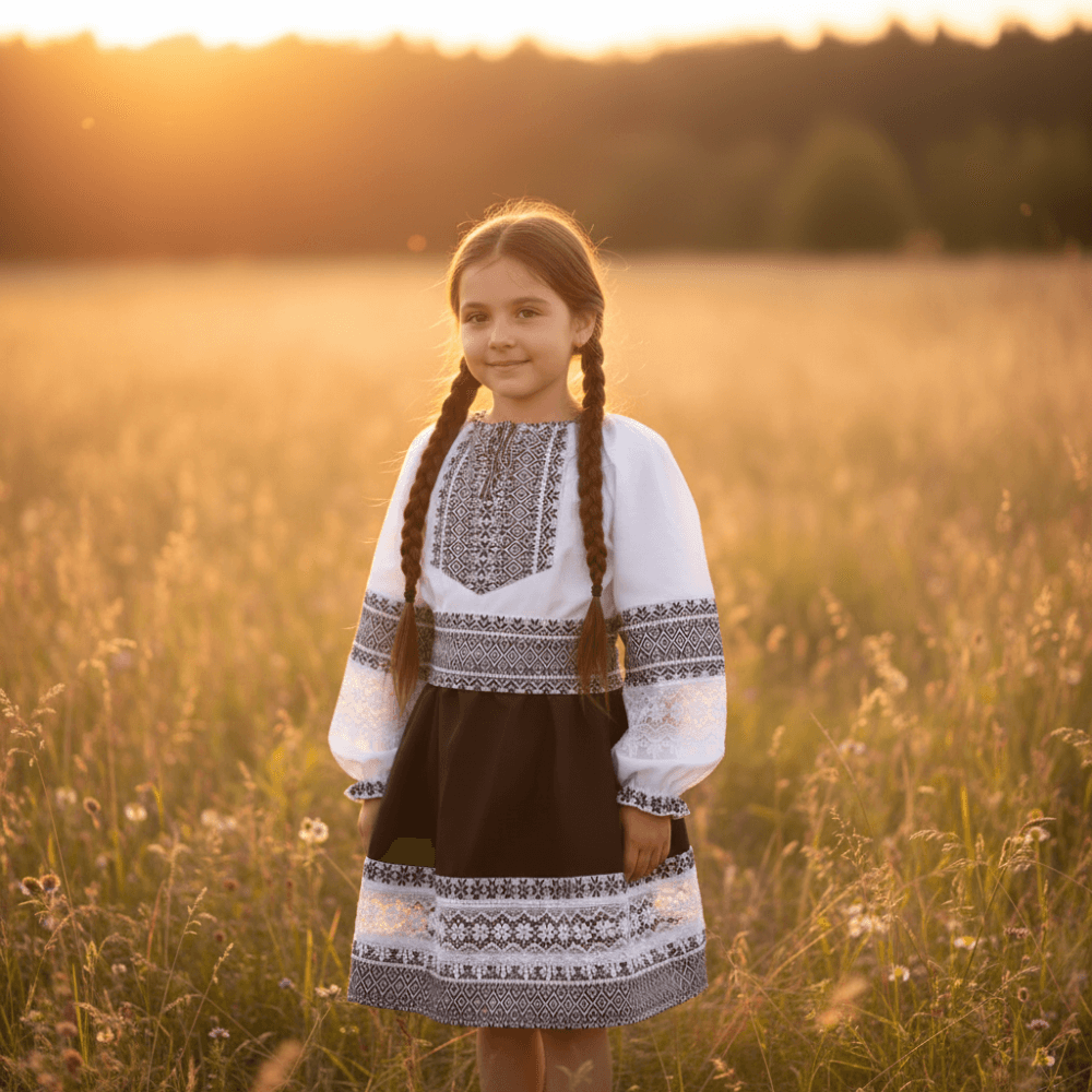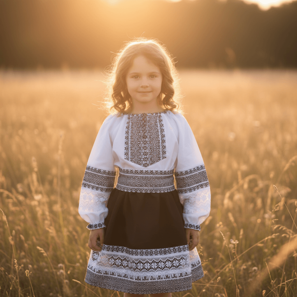 1 – pentru copii intre 0-1 ani (circumferinta bust bluza - 50cm, lungime bluza - 36 cm, lungime maneca - 33 cm; lungime fusta - 28 cm)