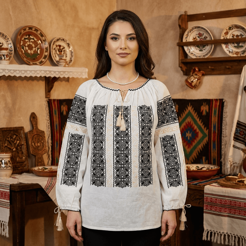 Experimentează adevărata frumusețe a României cu Larisa, o ie populară tradițională care este foarte apreciata datorita broderiei geometrice !