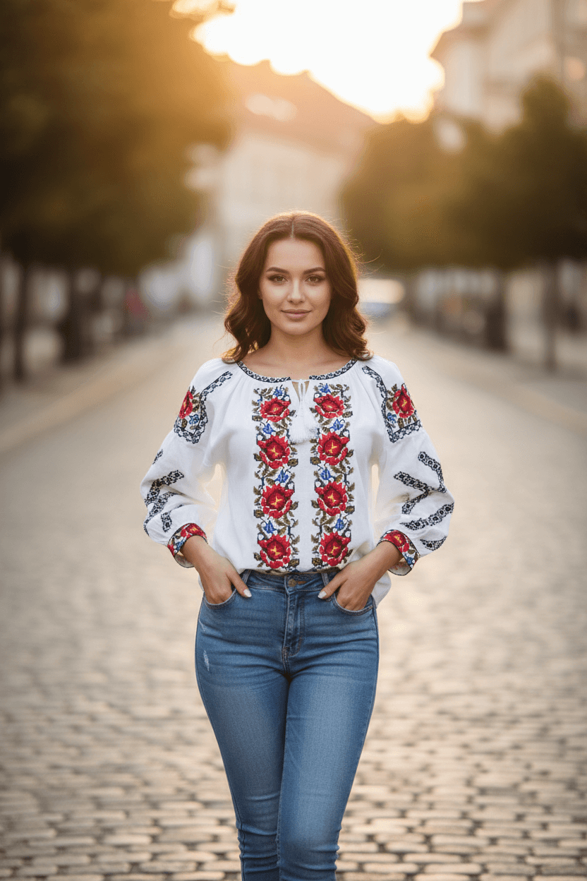 Designul său autentic aduce un omagiu tradițiilor românești, dar se integrează perfect și în garderoba contemporană. Poate fi purtată cu blugi, pantaloni eleganți sau fuste, fiind o alegere versatilă și plină de farmec.