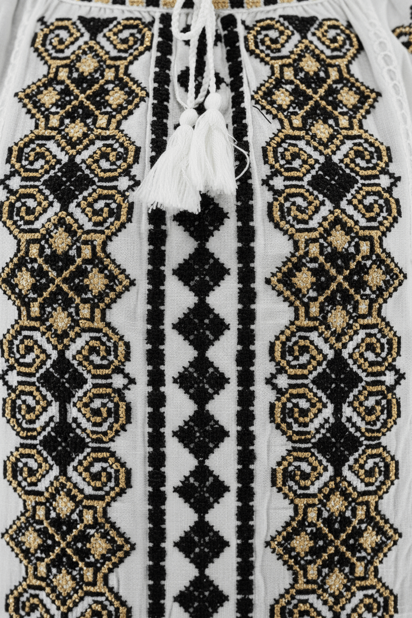 Ie traditionala romaneasca de culoare alba cu broderie crem/negru cu motive geometrice