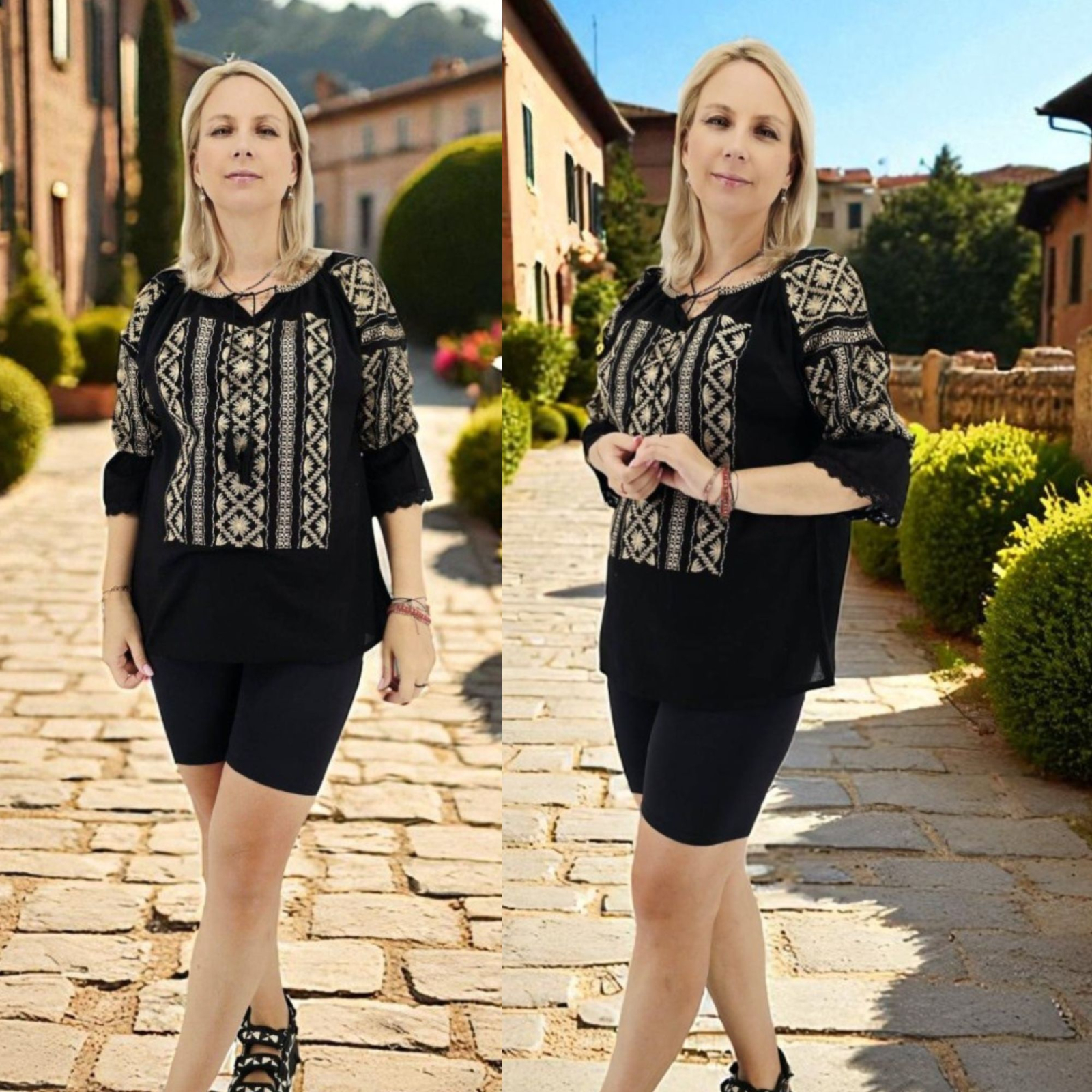 👉 Modelul din imagine are 160 cm, 63 kg, 92 cm bust și poartă mărimea M.