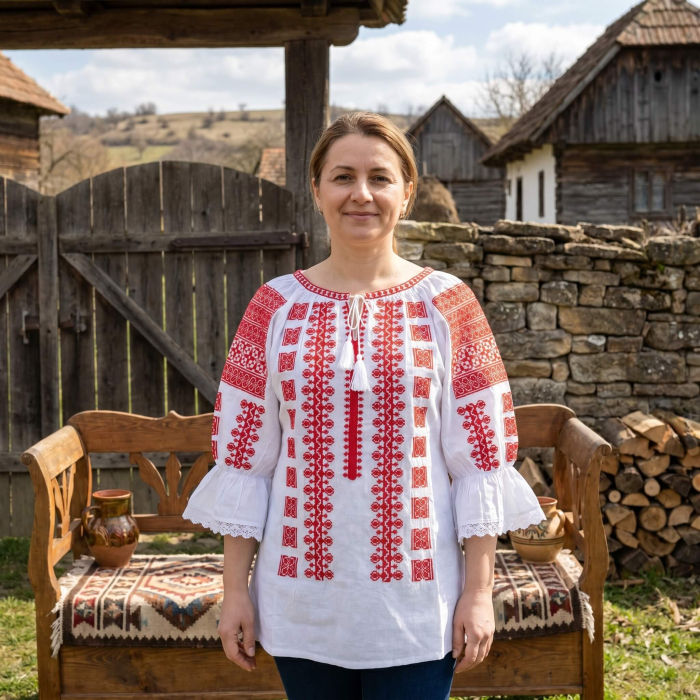 Experimentează adevărata frumusețe a României cu Elena, o ie populară tradițională care este foarte apreciata datorita broderiei geometrice !