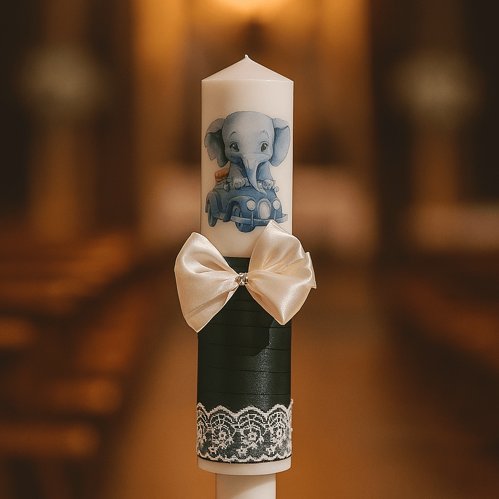 Lumanarea de botez cu model de elefant este o alegere minunată pentru ceremoniile de botez, aducând un aer de adorabilitate și simbolism în acest moment special. Această lumanare este meticulos decorată cu un model de elefant, care este un simbol al norocului, puterii și înțelepciunii în multe culturi. Elefantul este adesea asociat cu protecție și binecuvântare, ceea ce îl face o alegere potrivită pentru un eveniment atât de important precum botezul.