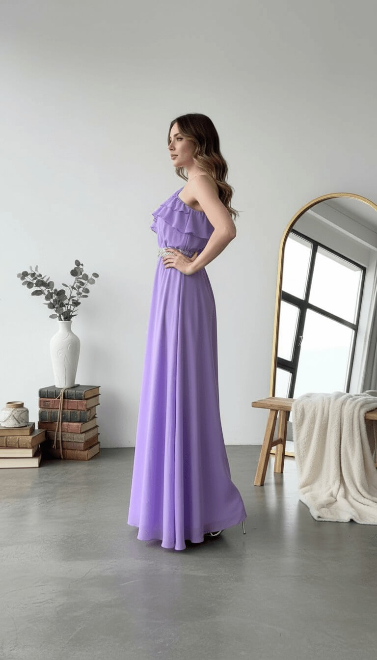 Rochie eleganta din voal cu dublura. Este potrivita pentru orice ocazie. In talie si la decolteu este prevazuta cu elastic, ce ofera lejeritate. Cureaua este din voal si este detasabila.Manecile sunt fie 3/4 fie lungi in functie de sezon.