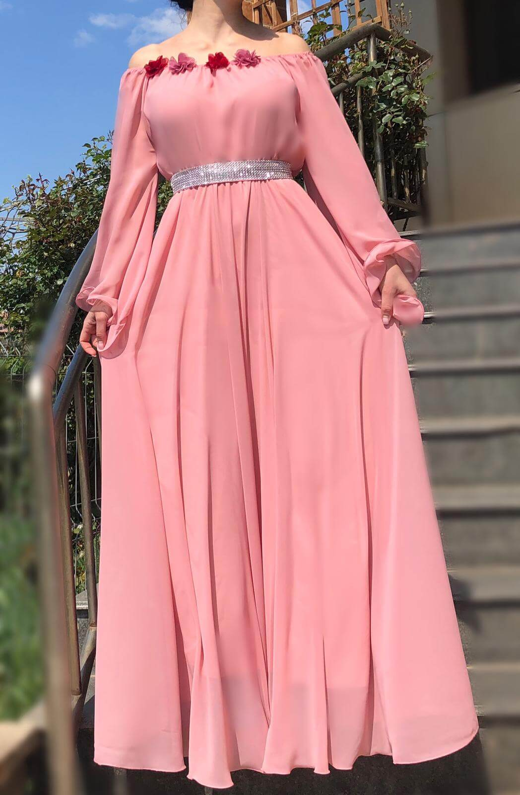 Rochie eleganta voal. Este potrivita pentru orice ocazie. In talie si decolteu este prevazuta cu elastic, ce ofera lejeritate. Cureaua este din acelasi material si este detasabila.Manecile sunt lungi sau 3/4 in functie de sezon.