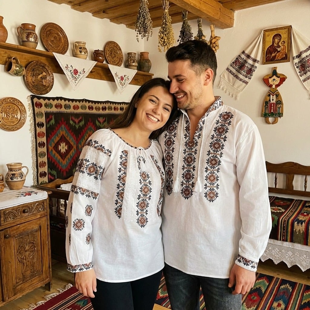 Set Traditional Cuplu 647/ Camasi traditionale cu broderie