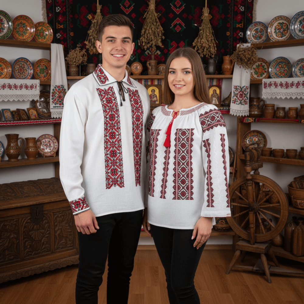 Set Traditional Cuplu 586 set traditional format din 2 camasi  traditionale | set traditional cuplu
