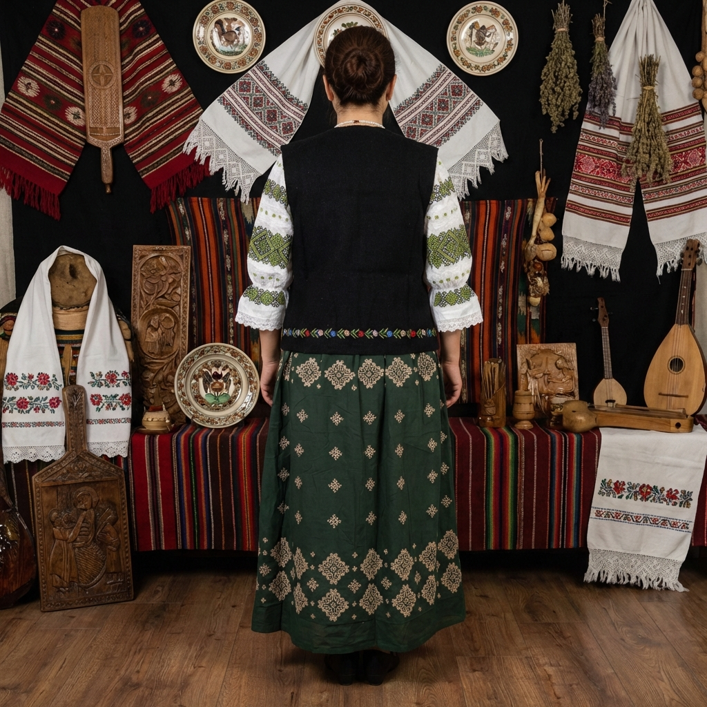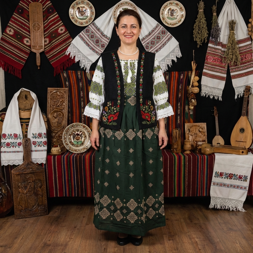 Vesta traditionala pentru femei Luminita este o piesa vestimentara deosebita, inspirata din portul specific regiunii Transilvania. Realizata dintr-un amestec de lana si acril, aceasta vesta ofera un confort sporit, fiind totodata si rezistenta. Designul vestimentar este bogat ornamentat cu motive florale si geometrice, brodate cu fir de lana colorat in nuante de rosu, verde si alb. Aceste motive sunt reprezentative pentru traditia romaneasca, simbolizand legatura cu natura si armonia. Vesta are o croiala clasica, fiind usor de asortat cu alte elemente vestimentare traditionale sau moderne. Marginile sunt finisate cu o bordura decorativa, care adauga un plus de eleganta. Aceasta vesta este ideala pentru a aduce un strop de autenticitate oricarei tinute, fiind potrivita atat pentru evenimente culturale, cat si pentru purtarea zilnica.